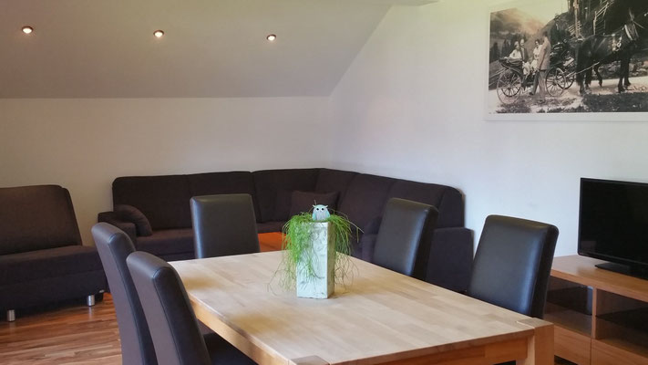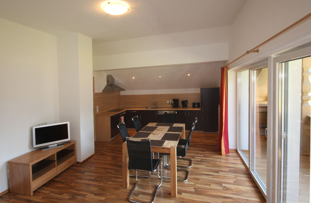 Our open plan apartment on the first floor offers a lot of space and has its own terrace.